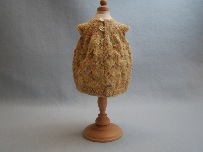 Jurkje en slofjes geschikt voor Bloesem en andere 30cm popjes. De rok van de jurk is gebreid in met een gaatjes patroon.