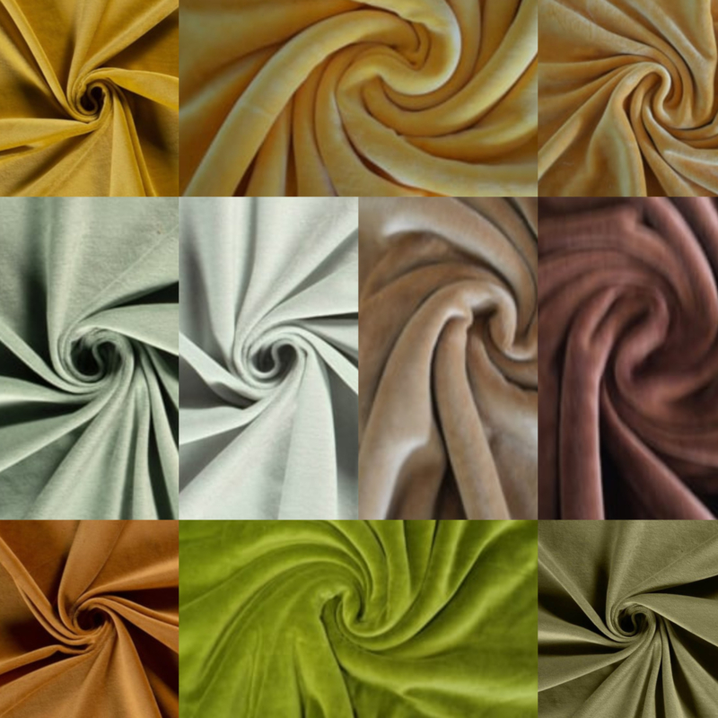 Nicky velours geel/groen/bruin tintenHeerlijke zachte nicky velours voor het maken van popjes. 50 x 75 cm in grijs/blauw tinten. Wil je een andere kleur kijken dan bij de ander tint kleuren in de webwinkel